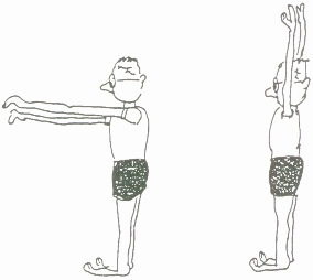 Elbows too can become a little difficult to fully straighten or palms turn up. Bend elbows and touch shoulders, then straighten with PALMS UP. Check that the wrists can move fully up and down.