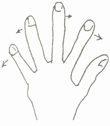 RDEB sufferers experience particular problems with joints of the fingers and hands. Regularly check that your child’s fingers will fully straighten. This can be done by putting them flat on a table. If they have become a little bent or are being always held bent start daily exercises. The webs between the fingers can begin to creep up towards the tips in this condition, exercises cannot stop the webbing, but dressings and hand wrappings seems to help. With the fingers a little apart, straighten the fingers fully. Check that they are completely straight on a flat surface.