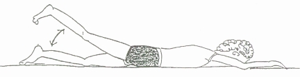 Hips often stiffen, particularly if a child sits for much of his time. Prone lying each day helps stretch them out. Lie on front. Lift right leg straight behind. Repeat with left leg.