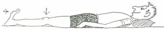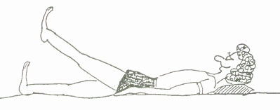then Straighten one knee fully and tighten. Lift that leg into the air, then lower. Repeat with other leg. (NEVER do both legs together as this can lead to back problems)