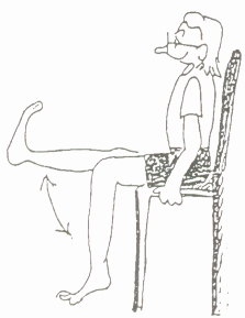 OR Straighten one leg when sitting on a chair and hold for the count of 5. Repeat with other leg. Make sure the chair has a back and that your child does not cheat by leaning back (holding on to the front of the chair with his hands may stop this)
