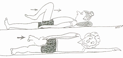 Knees too can lose flexibility and if bent for long periods can result in an inability to straighten fully. Prone lying will help to prevent this. Lying on back- Tighten muscles hard and pull feet “up” at same time count to 5 slowly.